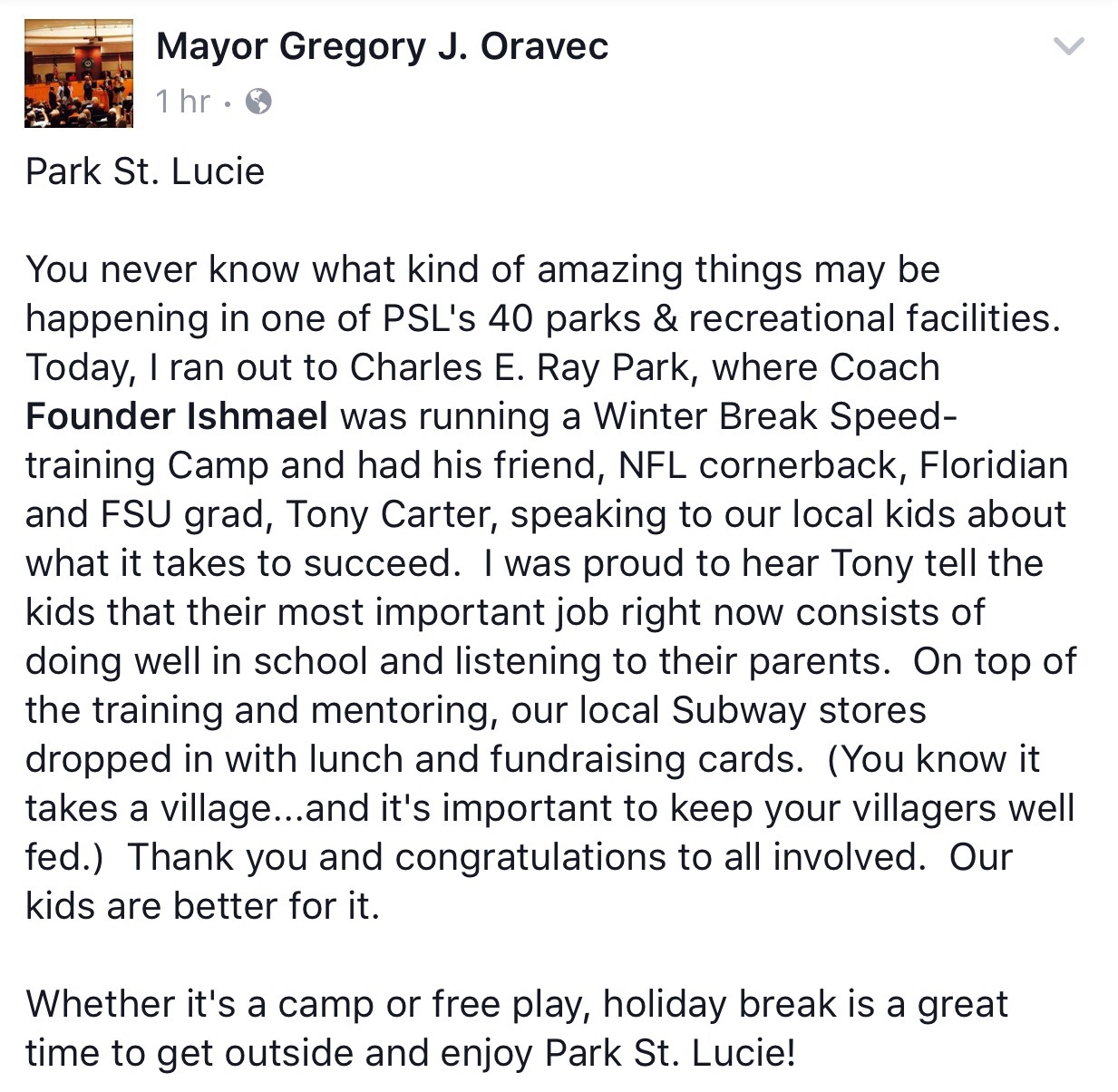 Thanks mayor for the support! Follow Us on Facebook@: Founder Ishmael #allforthekids #striveforgreatness #treasurecoastweneedmore @tcpalm